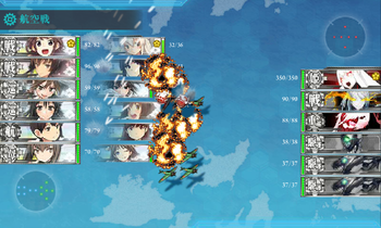 • "Enemy Air Raid Nodes" that are similar to the ones in 6-5 just consist of a single aerial combat phase with only the main fleet participating.