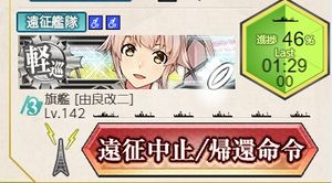 It is possible to cancel the expedition by clicking the Cancel Expedition/Recall Order (遠征中止/帰還命令) button.