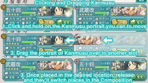 It is possible to click and drag girls around to adjust their position in the fleet. To do this, click on the girl's portrait and drag her to the desired position. She will swap places with the girl in that position.