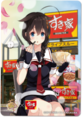People who also purchase 500 yen worth of goods at Sukiya will also have a chance to get a Kancolle 3D Card Most of these 3D cards will feature either Ryuujou, Supply Depot Princess,Northern Princess, Akashi, Ooyodo, Kaga, Naka, Shigure, Harusame and Yuudachi or Shimakaze, Yukikaze, and Amatsukaze.