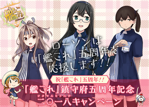 During February 16th, 2016 to May 6th, 2016, Kancolle is partaking in it's second collaboration with Lawson where they gave away a large amount of Kancolle goods to people who purchased items during the campaign.