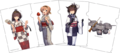 At the beginning of 2013 and through part of 2014, Kancolle did a collaboration with Family Mart where they have special posters of some kanmusus featured in Family Mart Uniforms, which this would include Akagi, Yuudachi, and the Standard Carrier Wo-Class. During the campaign they made several posters to promote the game and people could also purchase small character stands which featured the mentioned characters above among with a few more such as Kongou, Kaga, Inazuma, and Ikazuchi. Akagi and Wo-class Family Mart illustration would be featured later in the Weiss Schwarz card set.