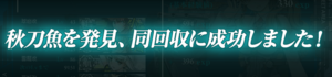 | As you defeat the enemy fleet to expand along the fishing grounds around the coastal waters and the Northern waters, gather 3 Saury! | ||||||